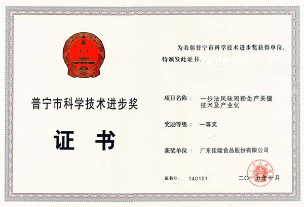 普寧市科技進步獎一等獎